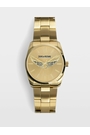 Women's stainless steel watch in gold Round case, 36 mm diameter, gold dial with rhinestone wings Quartz movement Functions: hour/minute/second Water-resistant to 5 bar Steel band Diameter: 33 mm Composition 100% STEEL Care Clean you jewellery with a soft, dry cloth Avoid contact with water and chemicals (fragrance, cosmetics, chlorine, hydroalcoholic gel) Protect your jewellery from humidity and any source of heat Avoid sleeping with your jewellery on Store your jewellery in its protective pouch