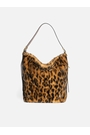Hobo bag in leopard faux fur with leather shoulder strap and signature wings.