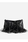 Smooth leather bag with all-over fringes, adjustable shoulder strap, Zadig&Voltaire X Egonlab signature.