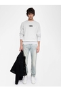 Round neck sweatshirt adorned with a signature badge at the front.