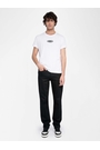 Straight black denim jeans with zip fastening.