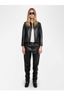 Fitted buttoned jacket with embossed wings in smooth leather.