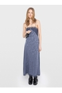 Mid-length silk dress with lingerie spirit, adjustable straps and lace at chest and hem.