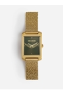 Stainless steel watch, gold tone, rectangular case 22 x 24 mm, khaki dial with gold signature wings, quartz movement, functions: hours/minutes, water-resistant to 5 bar, stainless steel Milanese mesh bracelet. •Stainless steel watch •Khaki dial with gold signature wings •Quartz movement •Functions: hours/minutes •Water-resistant to 5 bar Stainless steel Milanese mesh bracelet •Rectangular case, 22 x 24 mm Composition 100% STEEL Care To extend the life of your jewellery, we recommend taking care of it and handling it with caution Clean your jewellery with a soft, dry cloth Avoid contact with water and chemical products (perfume, cosmetics, chlorine, hand sanitiser) Protect your item from moisture and any heat sources Avoid wearing your jewellery at the beach, at the pool or during sports to prevent shocks and scratches Store your jewellery in its pouch