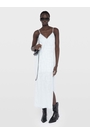 Long lingerie-inspired dress in jacquard silk, with slit, adjustable straps, back wing embroidery and lace.