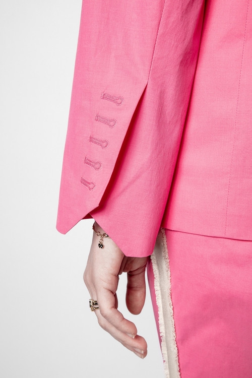 Zadig & Voltaire Pink blazer Crafted from COTON, this item fastens via buttons and features notch lapels, one welt pocket and two flapped pockets on the front and a single vent at the back.