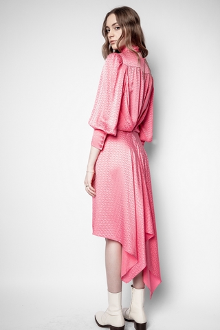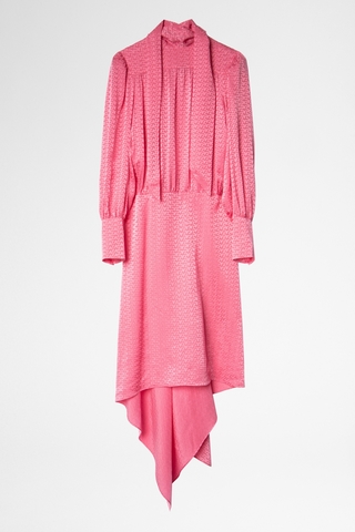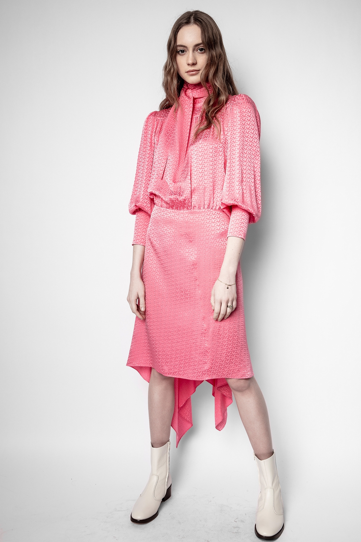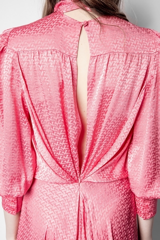 Zadig&Voltaire womenÂ’s pink silk dress,ZV monogram jacquard, ribbon at collar. Fashion Show.100% silk.