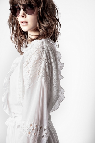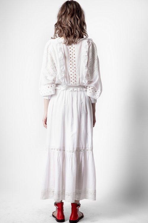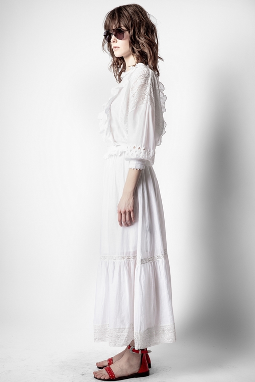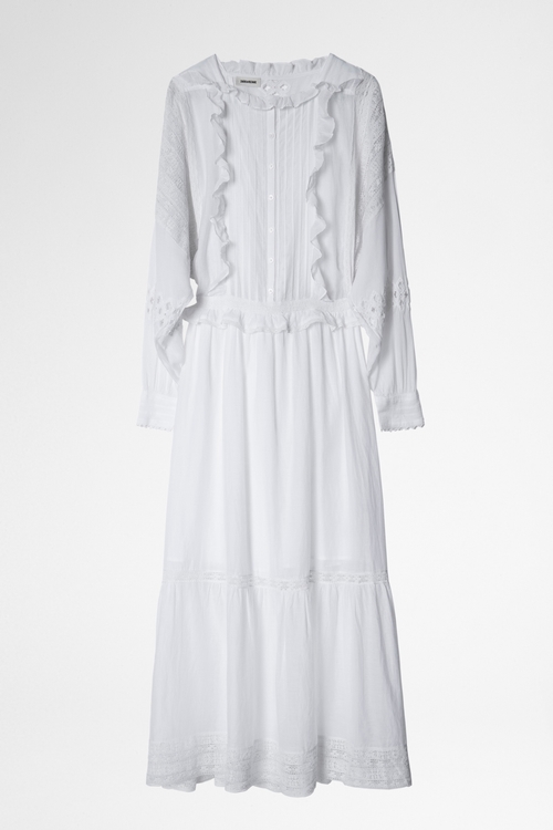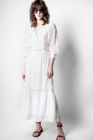 Zadig&Voltaire womenÂ’s white dress, long, broderie anglaise, button line at front.