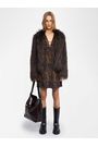Short dress in printed silk, long balloon sleeves, deep neckline with lace-up.