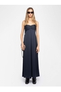 Long lingerie-inspired dress in Japanese satin with adjustable straps and a pleated bustier.