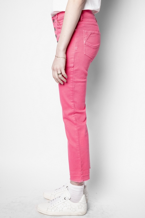 Zadig&Voltaire women's pink straight-cut pants with 4 buttons on the front.97% cotton 3% elastane