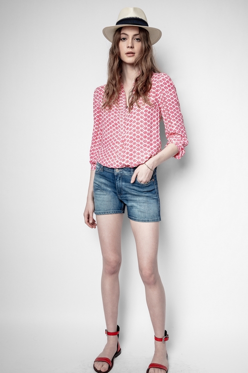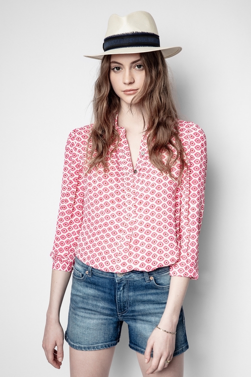 Zadig&Voltaire womenÂ’s printed white tunic with buttons on the front. 100% viscose. Dimensions: Model is 176 cm/5'9" and is wearing a size S.