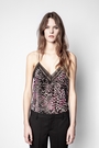 Zadig&Voltaire women's black camisole with distressed velvet motif and lace embellishment. Dimensions:Model is 176 cm/5'9" and is wearing a size S.