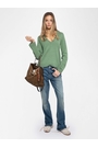 V-neck jumper with leather patch.