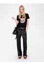 Short-sleeved jumper with round neckline featuring intarsia and rhinestones.