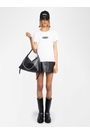 Round-neck, short-sleeve T-shirt with rhinestone customization.