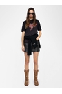 Round neck short-sleeve T-shirt with lettering and rhinestones.