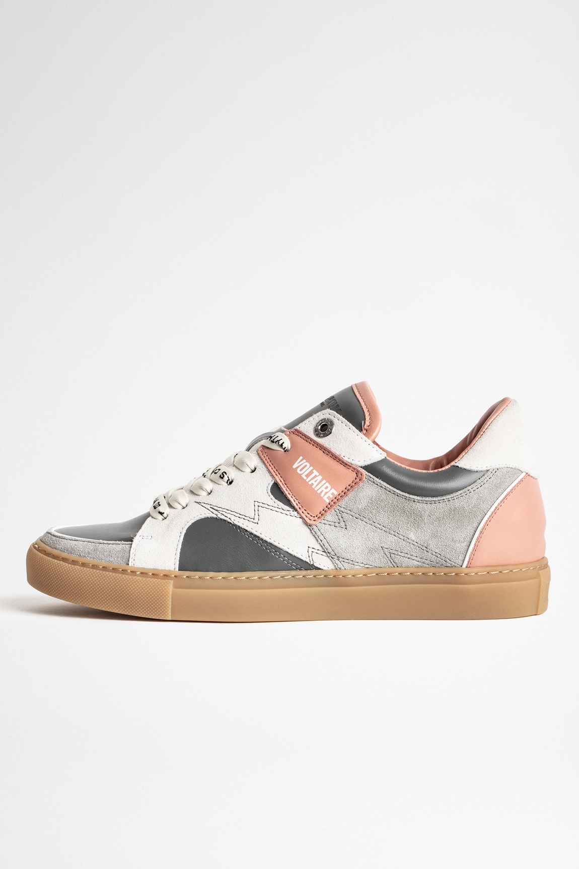 Zadig&Voltaire womens suede low-top leather sneakers with 2.6 cm wedge insole and VOLTAIRE patch. Made in Portugal. 100% calf leather. Dimensions: Platform insole: 2,6 cm.