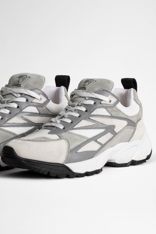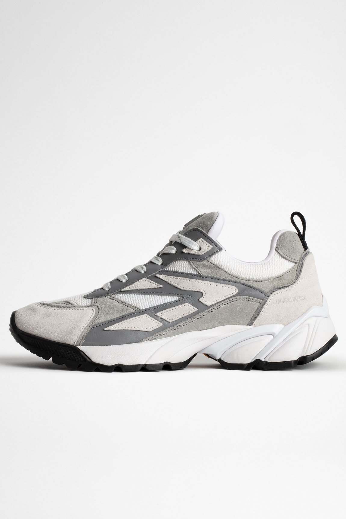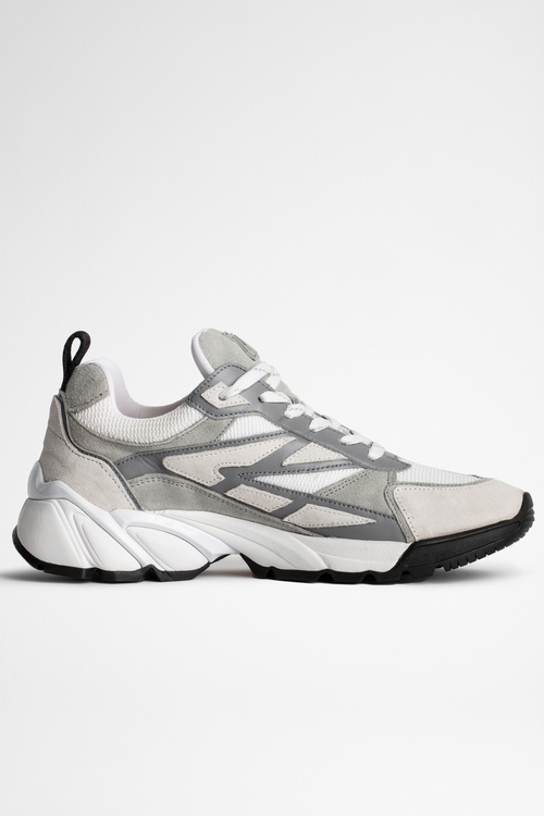 Zadig&Voltaire womenÂ’s gray material mix running shoes with ZV patch for a sportswear look. Made in Portugal. 50% Cowhide 40% Polyamide 10% PO. Dimensions: Heel height : 3 cm.